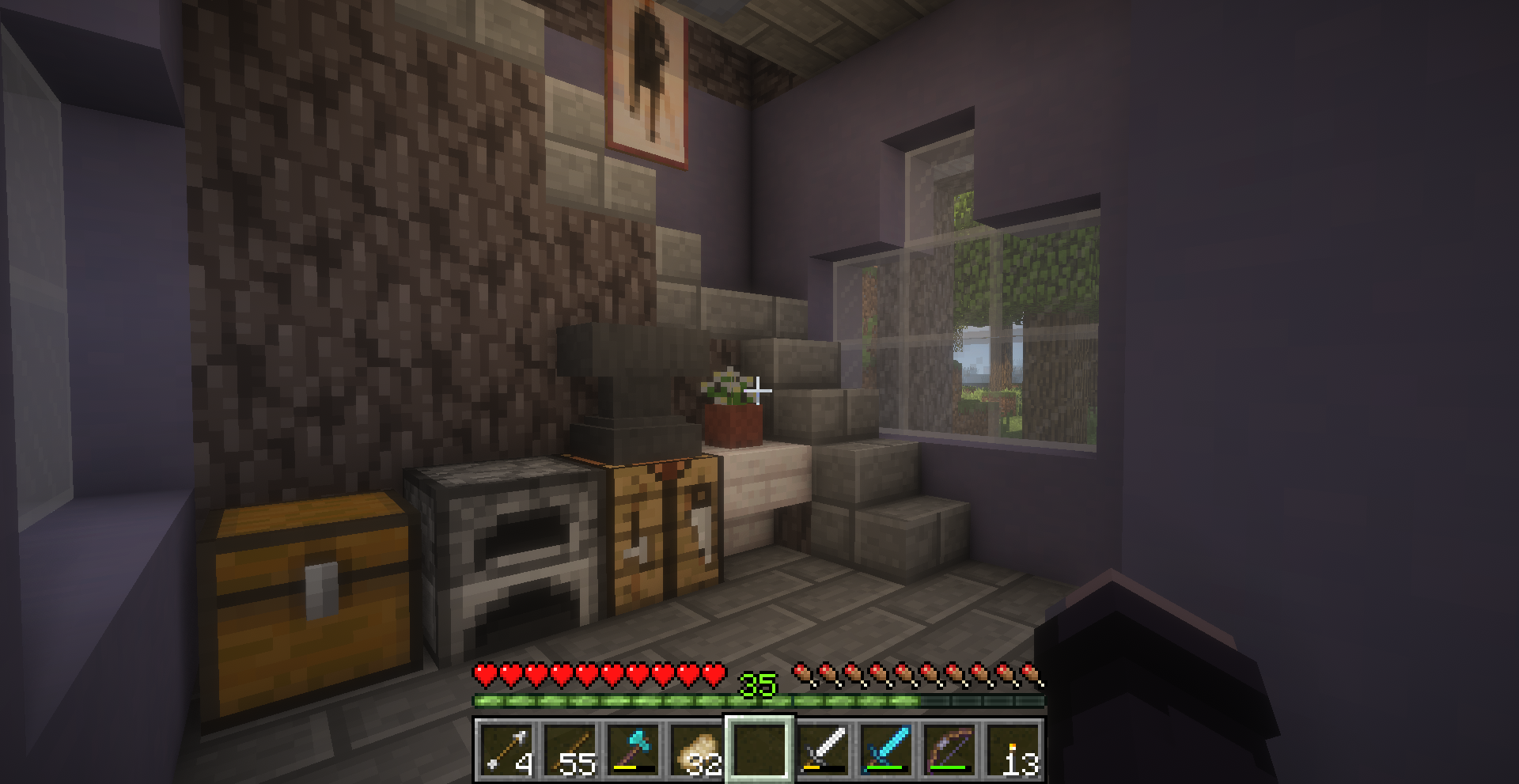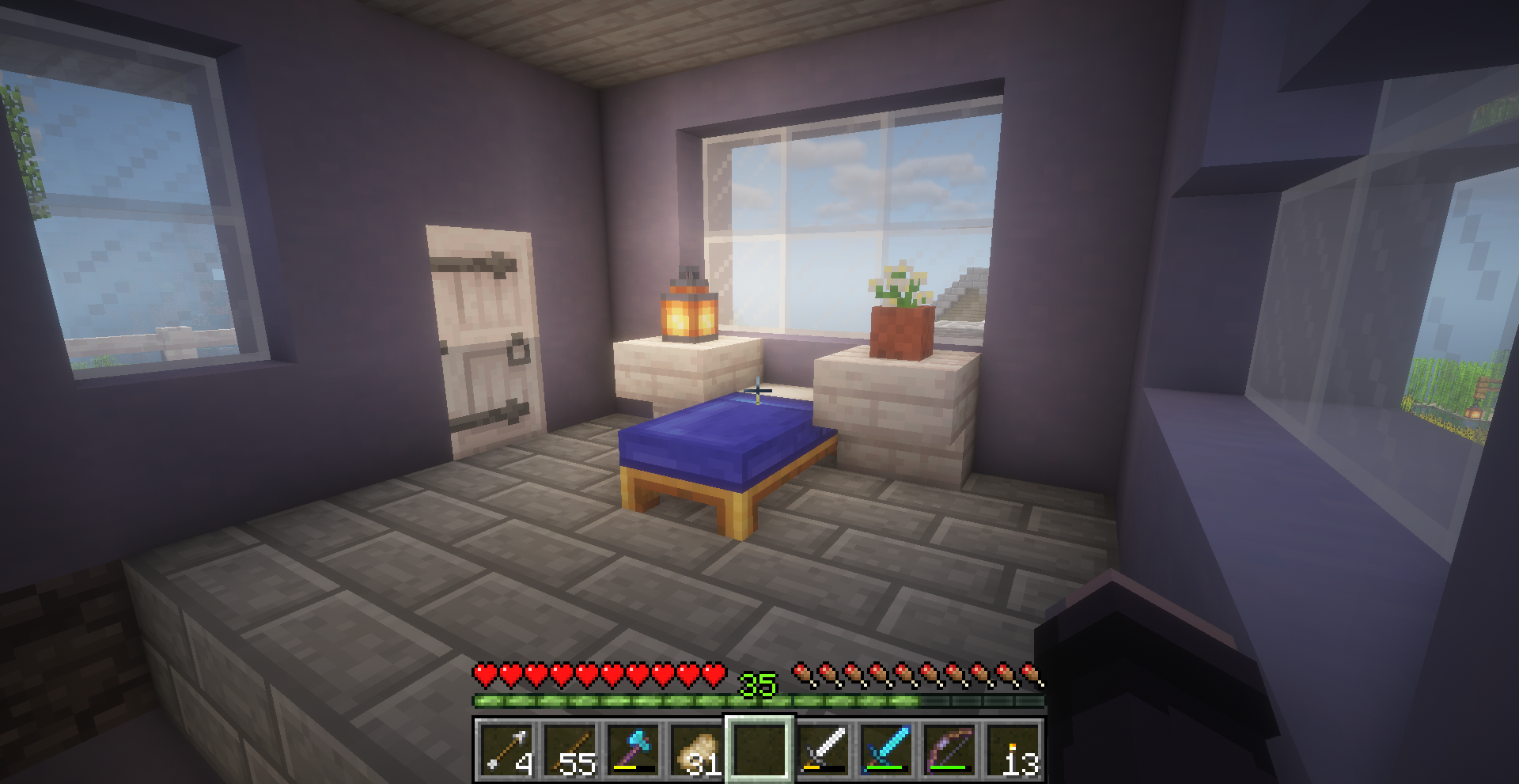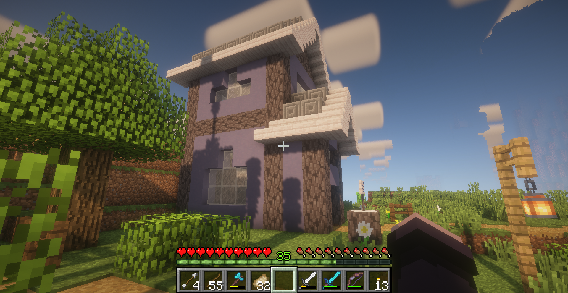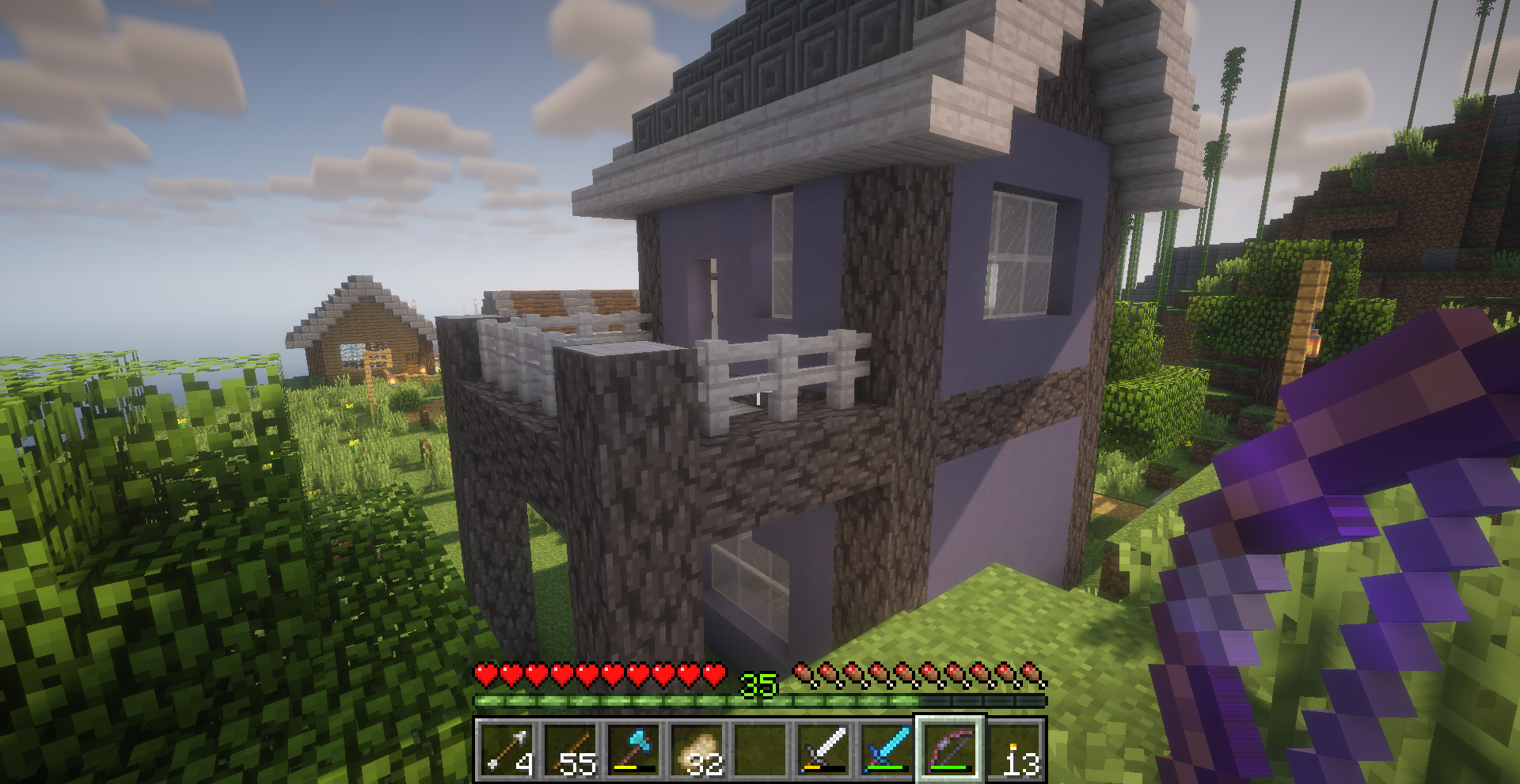 This house uses some materials that are atypical for my builds. The pale wood took a long time to gather, as I had to search for a pale forest. The pale forest that I found had, like, two trees in it ... and it was super small. I'm not sure if that's standard for the biome or not, but I had enough luck with sapling drops to make this build work.
