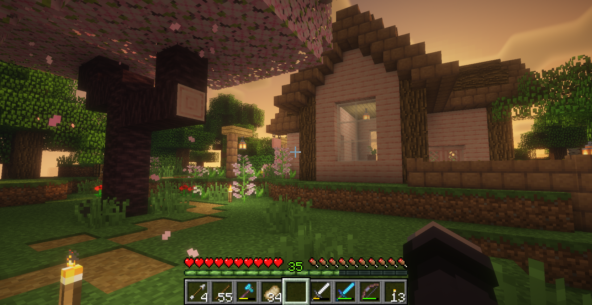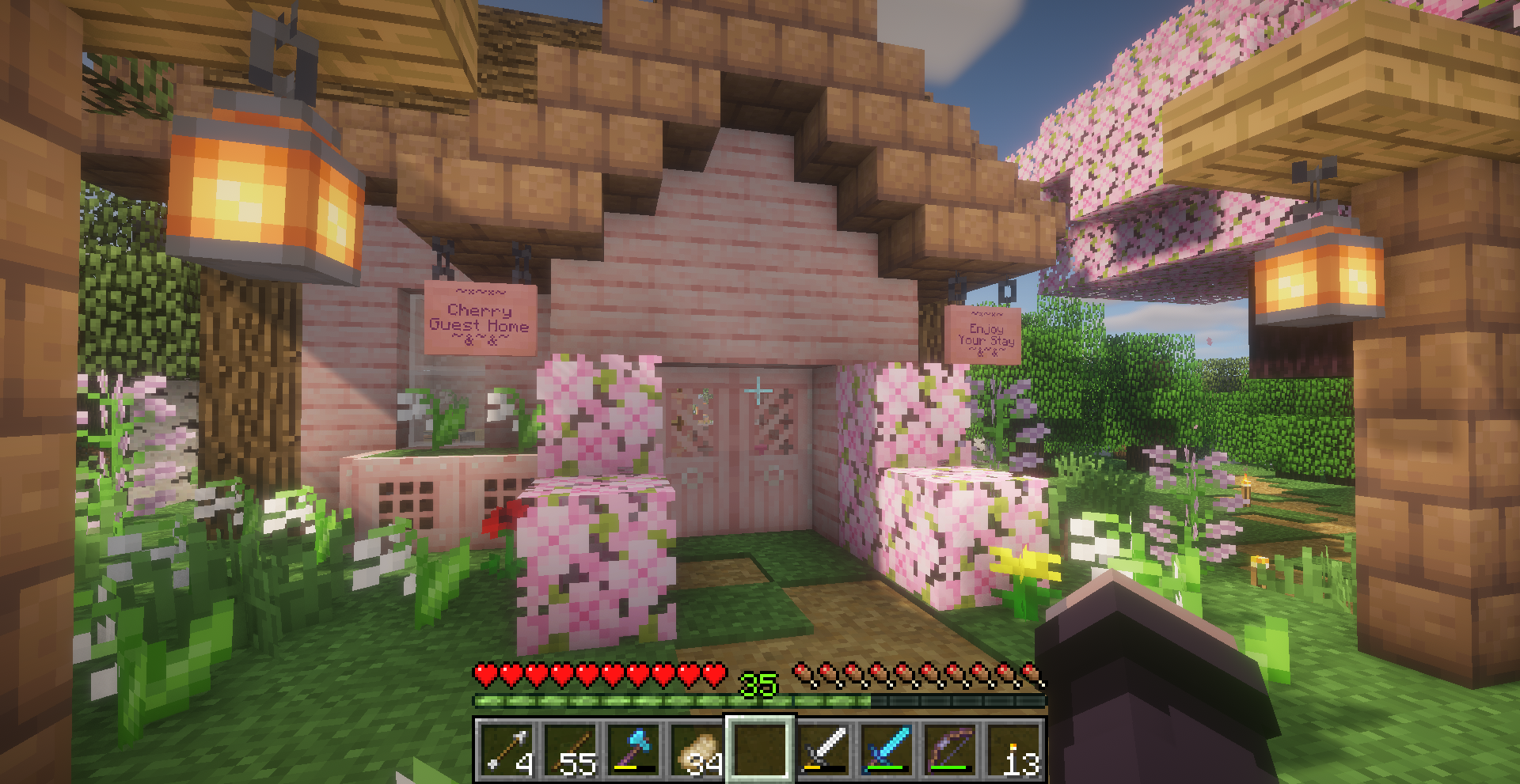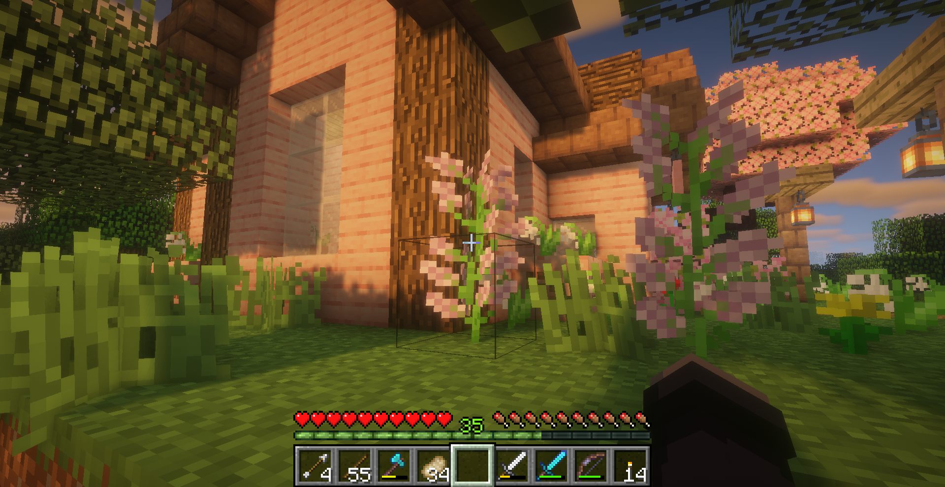 I really like how this house looks. I think the cherry wood looks fantastic with the mud bricks! They also happen to be two of my favorite recently-added blocks.