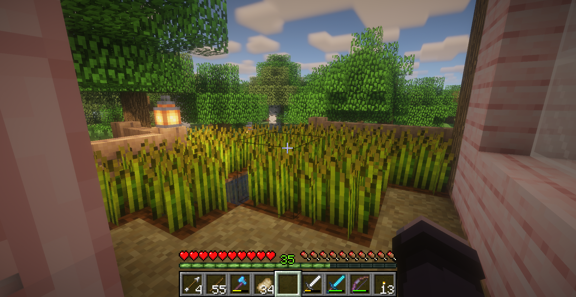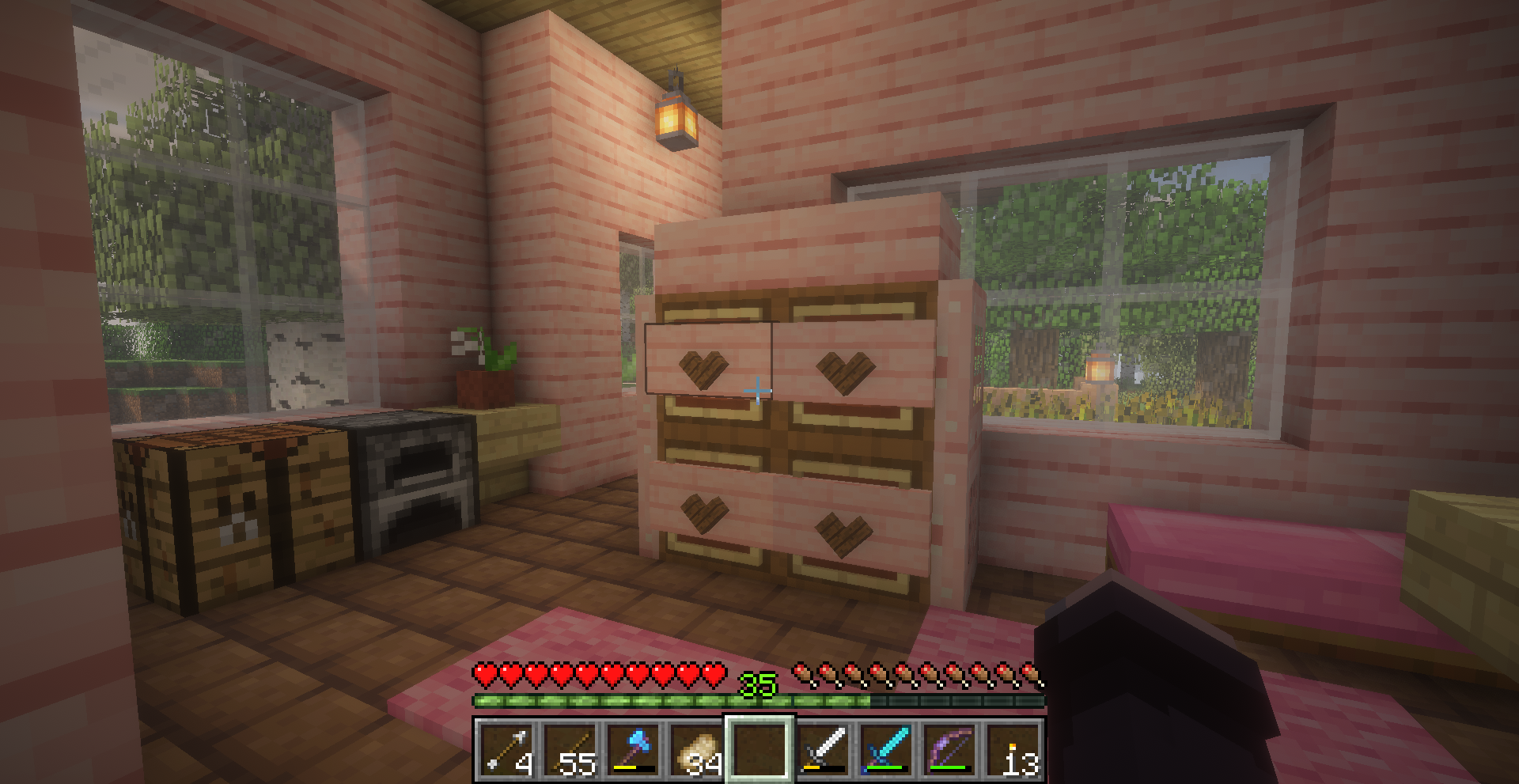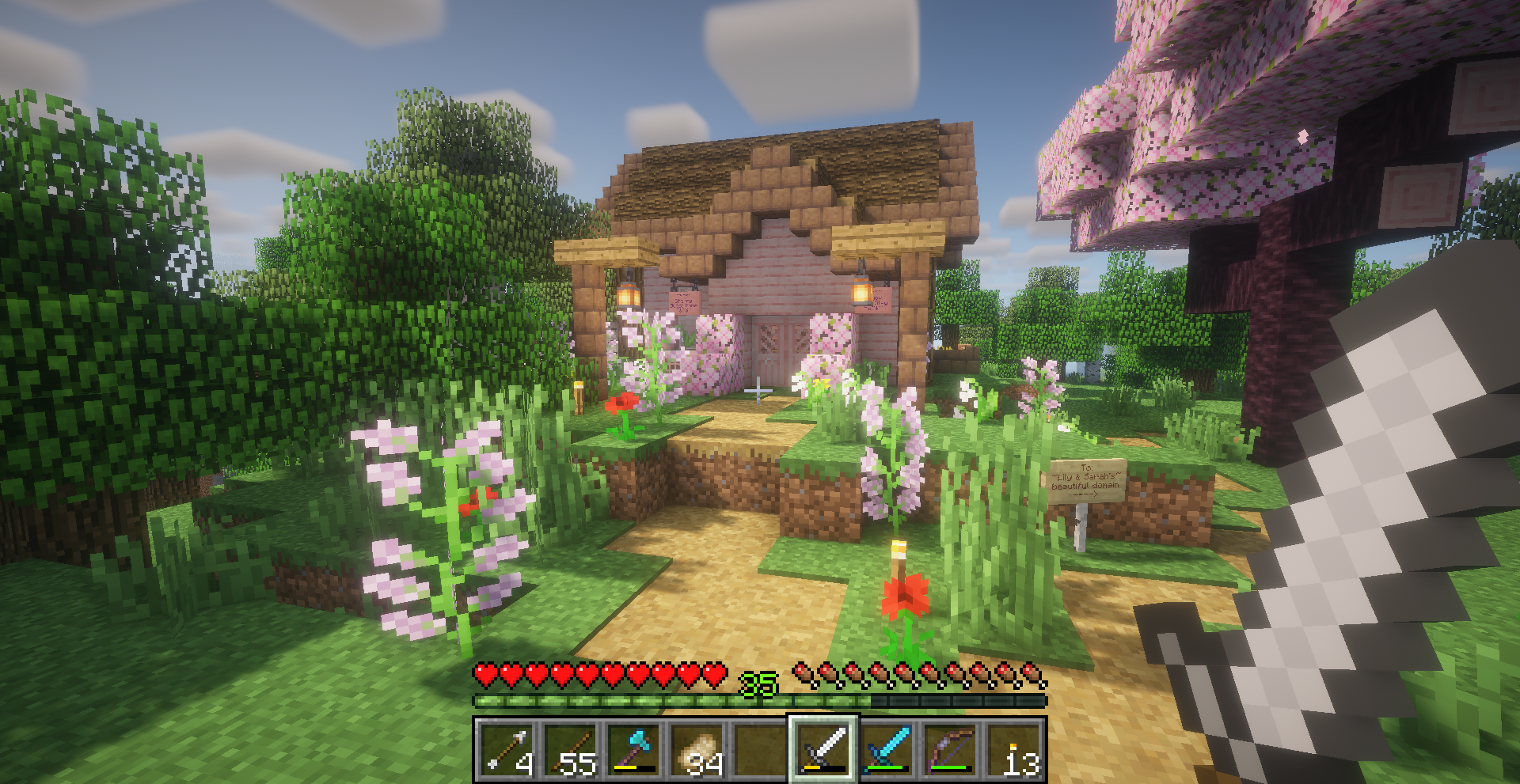 I really like how this house looks. I think the cherry wood looks fantastic with the mud bricks! They also happen to be two of my favorite recently-added blocks.